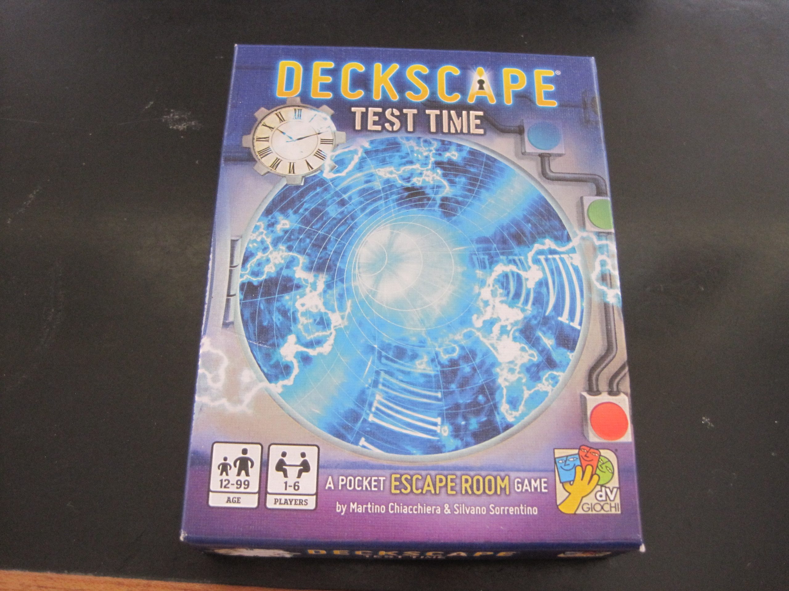 Over lunch we decided to try out a new escape room in a box. Deckscape – Test Time is designed for 1 to 6 players and we were playing as a couple. Having played it, I’d say 6 was too many, but it worked well for two players.