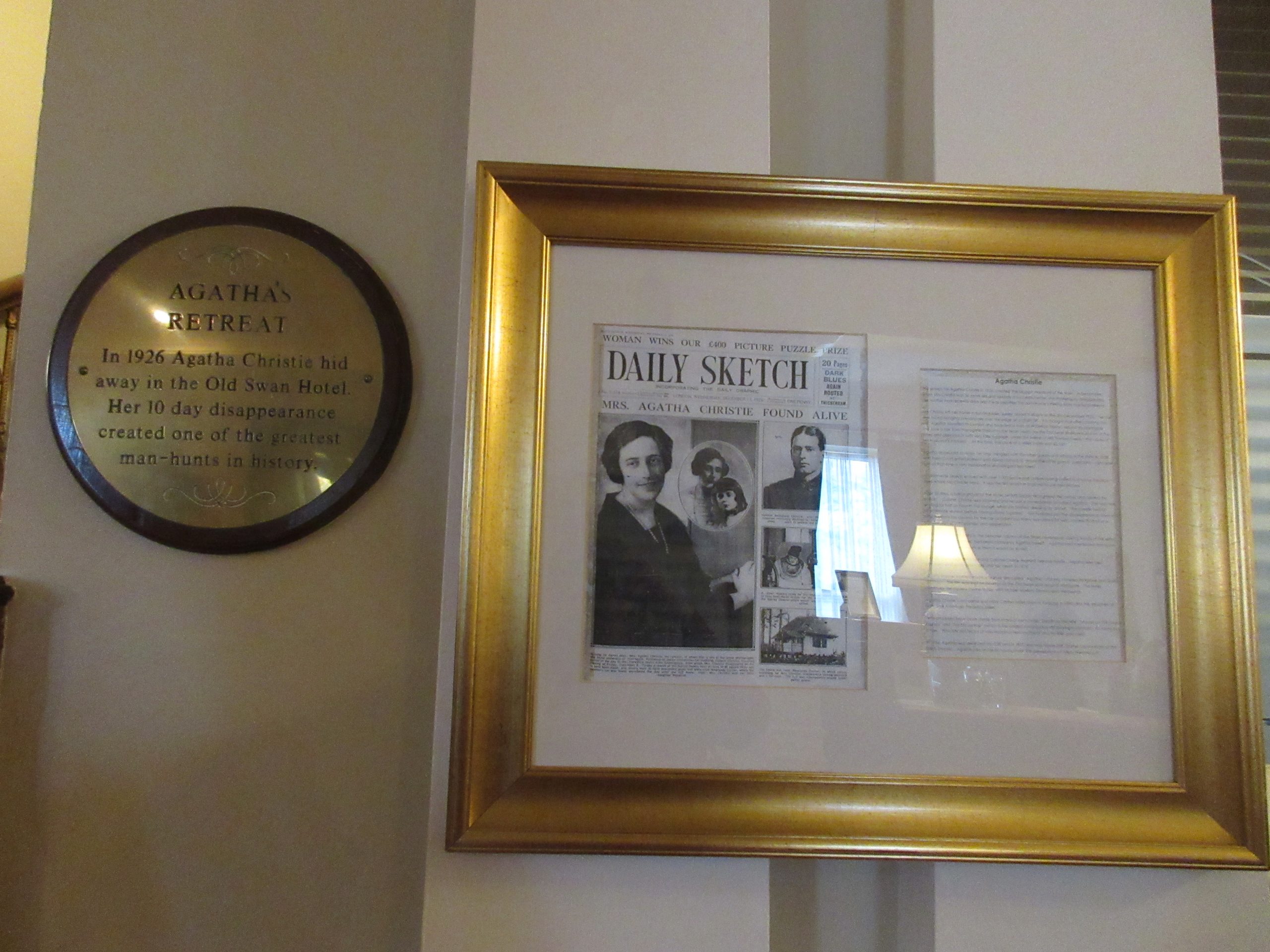 There is a plaque about the Agatha Christie connection to the hotel in the lobby and a newpaper article to accompany it in a glass case.